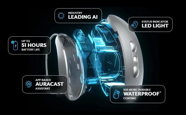 Omega AI hearing aids aren’t just designed for today—they’re built for the future of hearing technology. Auracast™ is a new wireless assistive listening technology designed to make hearing in public spaces more accessible than ever. This includes places like airports, concert halls, movie theaters, places of worship, and more.